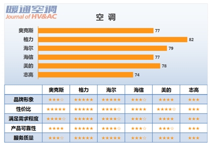 报告显示,在空调行业6个主要品牌的调查中,格力综合得分为82分,排名第一,是唯一一个80分以上的品牌;具体到各指标中,格力在品牌形象、性价比、满足需求程度、产品可靠性、服务质量五大主要维度上,表现都十分突出,是唯一全部获得“满五星”的品牌。
