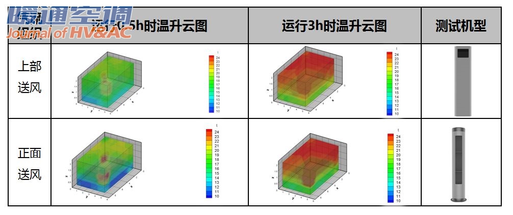 嗯,这种传统柜式空调的送风方式确实会导致头热脚冷。因为暖空气比冷空气轻,因此传统“热风不落地”的送风方式就会让暖空气一直“缩”在房间上方,而冷空气则还是沉在房间下方,房间温度分布不均匀,当然会头热脚冷。大家不妨看下墙上的温升云图。