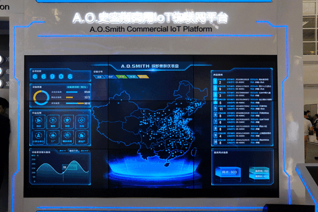 A.O.史密斯今年首次亮相IoT物联网平台,也是本次展会的亮点之一。自今年起,A.O.史密斯商用全线产品和服务会全面迈入物联网时代。在主动、快速为客户提供定制化精准服务支持的同时,还能确保产品在整个使用周期内的运行成本优化得到更可靠的保障。