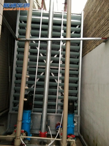 方案四:把冷凝水作为室内冷却塔的补水,因冷凝水温度极低,能降低冷却塔出水温度,提高制冷能效。