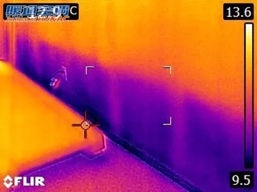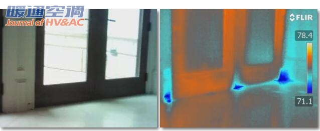 "正常肉眼根本看不出这扇门有什么问题,但是通过我的FLIR T620发现,晚上冷是有原因的,这缝隙也太大了!"
