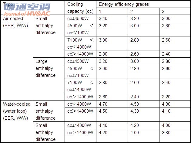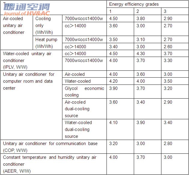 Table1 Energy efficiency grades for unitary air conditioner