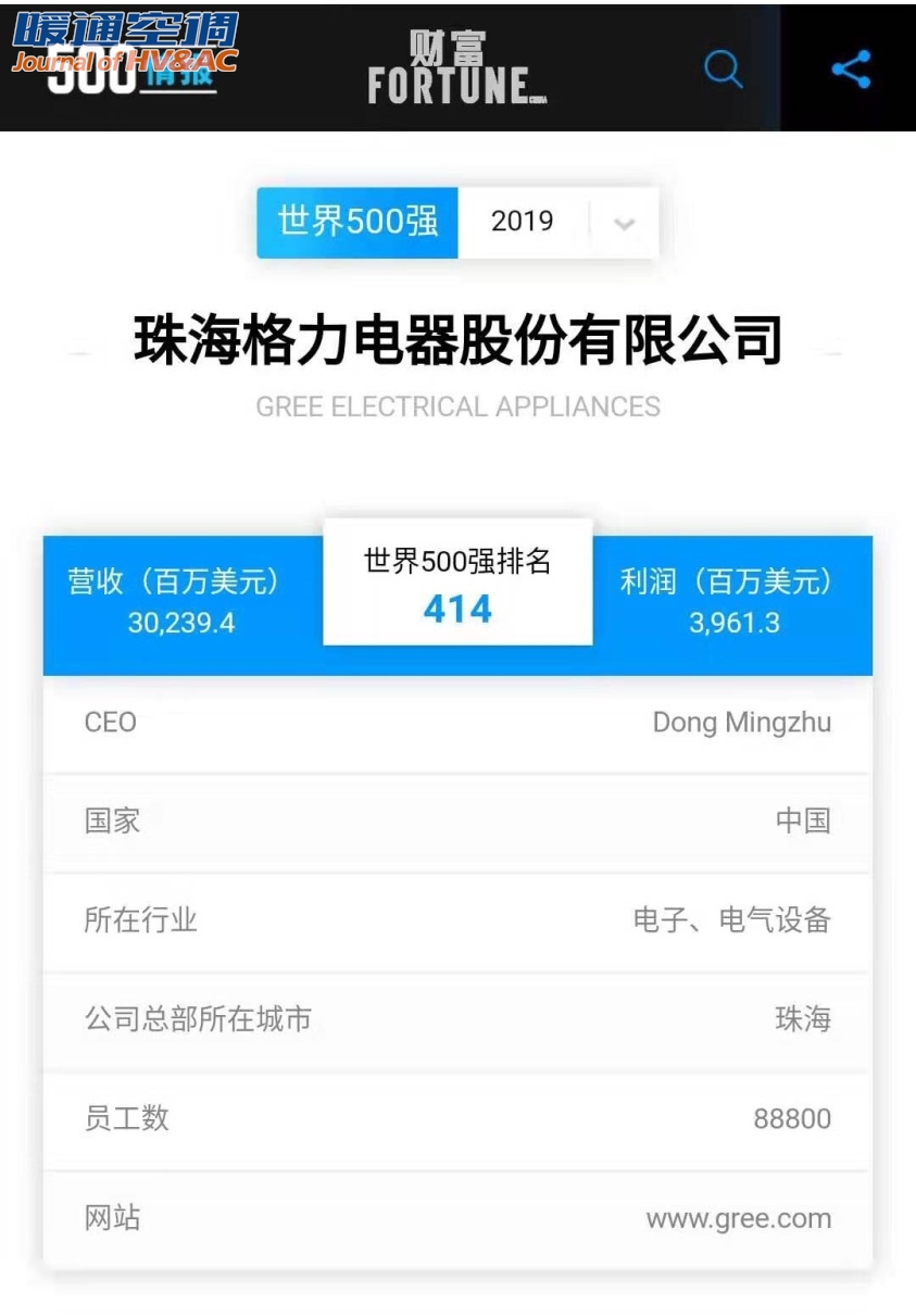 7月22日,2019年《财富》世界500强名单公布,格力电器凭借瞩目的营收成绩和创新能力强势上榜,位列榜单414位。在上榜世界500强榜单的129家中国企业中,格力电器的净资产收益率(ROE)居首位。