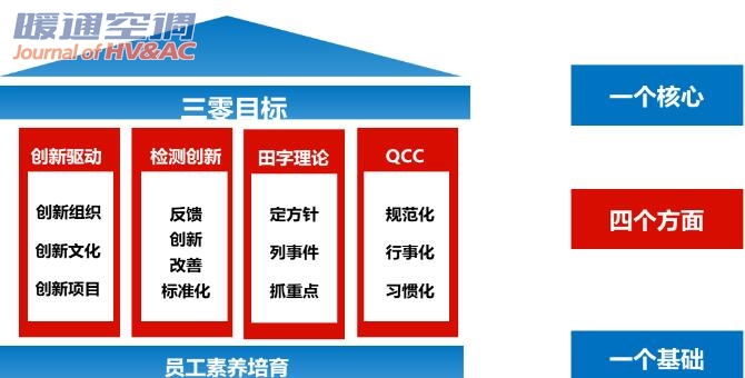 凌达找到了这个难题的突破口。相比于部分企业单点单线的质量管理模式,凌达的全面质量管理贵在“全面”——它建立了“一个核心、四个方面、一个基础”的“114质量管理体系”,体系内容如图所示: