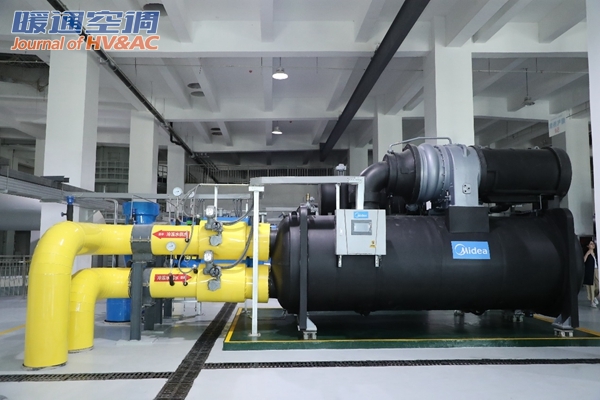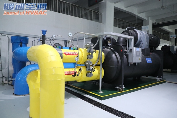 其中,在地源热泵系统中,地源侧进出水温度较低(出水温度8℃,进水温度4℃),新机场要求设备制热出水温度达到50℃,机组运行压差比较大,恶劣的运行条件对离心叶轮的压缩比是极大的考验。美的采用热气旁通技术保证机组在低负荷条件下稳定运行,通过变频调节实现压缩机多工况多压比高效运行,同步改良换热器及阀体节流控制方式,进一步提升机组能效。