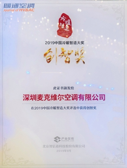 多年来,麦克维尔坚持以技术创新为理念,分别在武汉、深圳、苏州设立独立的研发中心,不断投入研发的测试保障设施,并能持续向市场发布例如:高效风冷螺杆、低温强热型的风冷模块机组、家用多联机等产品,特别是在两联供户式水机领域,无论是过去的2018年,还是2019年,在行业调研报告的数据中,麦克维尔的产品销量和技术在水机品牌中均处于行业主导地位。麦克维尔凭借优异的技术创新能力,一举斩获“创智奖“。