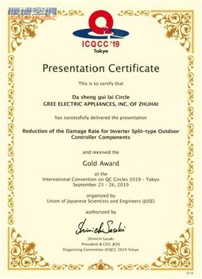 近日,第44届国际质量管理小组会议(简称“ICQCC”)在日本东京召开,中国取得了41项2019ICQCC金奖的可观成绩,其中格力电器斩获三项金奖,展现出卓越的质量管理实力。