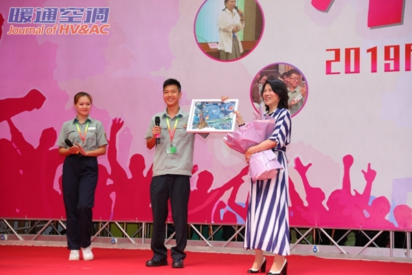 两位2019届新入职大学生代表向董明珠赠送礼物