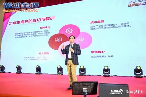 海林节能董事长兼总经理李海清在题为《海林二十一年》的讲话中分享了企业21年的成长之路。海林节能从六个人的创业团队蹒跚起步,发展为集研发、制造、销售、服务于一体的高新技术企业;海林温控器在中国暖通自控领域始终保持第一品牌的地位,产品遍布全中国的各个角落,并成为全球重要的温控器提供者,拥有了极高的品牌价值。