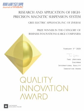 据了解,国际质量创新大赛是质量领域内最权威、最具影响力的国际性活动,主要围绕创新和质量两个维度,从新颖性、实用性、知识性等特性评价参赛项目。目前,有中国、瑞典、芬兰等19个国家参与。在评选出的24个获奖项目之中,中国独占5项,成为获奖最多的国家,获奖项目包括格力电器《高精度磁悬浮系统的研究与应用》等。