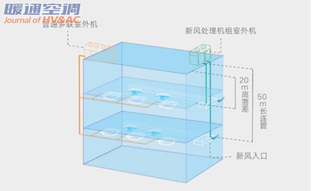 新风系统可实现50m长连管,20m高落差设计,方便室内外机组的设计和安装。