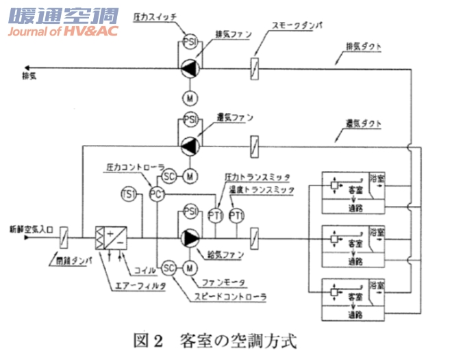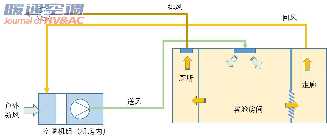 笔者查到该游轮上空调系统设计资料(日本三菱重工设计和建造)得知,这是全空气式空调方式,房间大部分回风经走廊回到机房空调机组,与取自户外的一部分新风混合、再经温湿度调节处理后送入房间。卫浴间排风为独立排风。关闭回风仅保留新风运行也可实现原风量的30%以上风量运行。空调系统算是比较完备的,且客舱空调与公共区域空调是分别独立设置,新风与排风口分别设置于左舷与右舷避免交叉,应该可容易实施污染区与洁净区域分离,但实际的空调运行情况未知。笔者为方便理解绘制简单示意图,如下图。