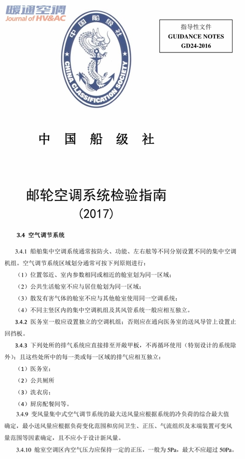 游轮空调系统检验指南供参考,该邮轮的空调系统已在前述给出分析,游轮的空调系统检验指南中的节选如上图(空调系统必须具备新风系统,不会允许内循环系统的)。