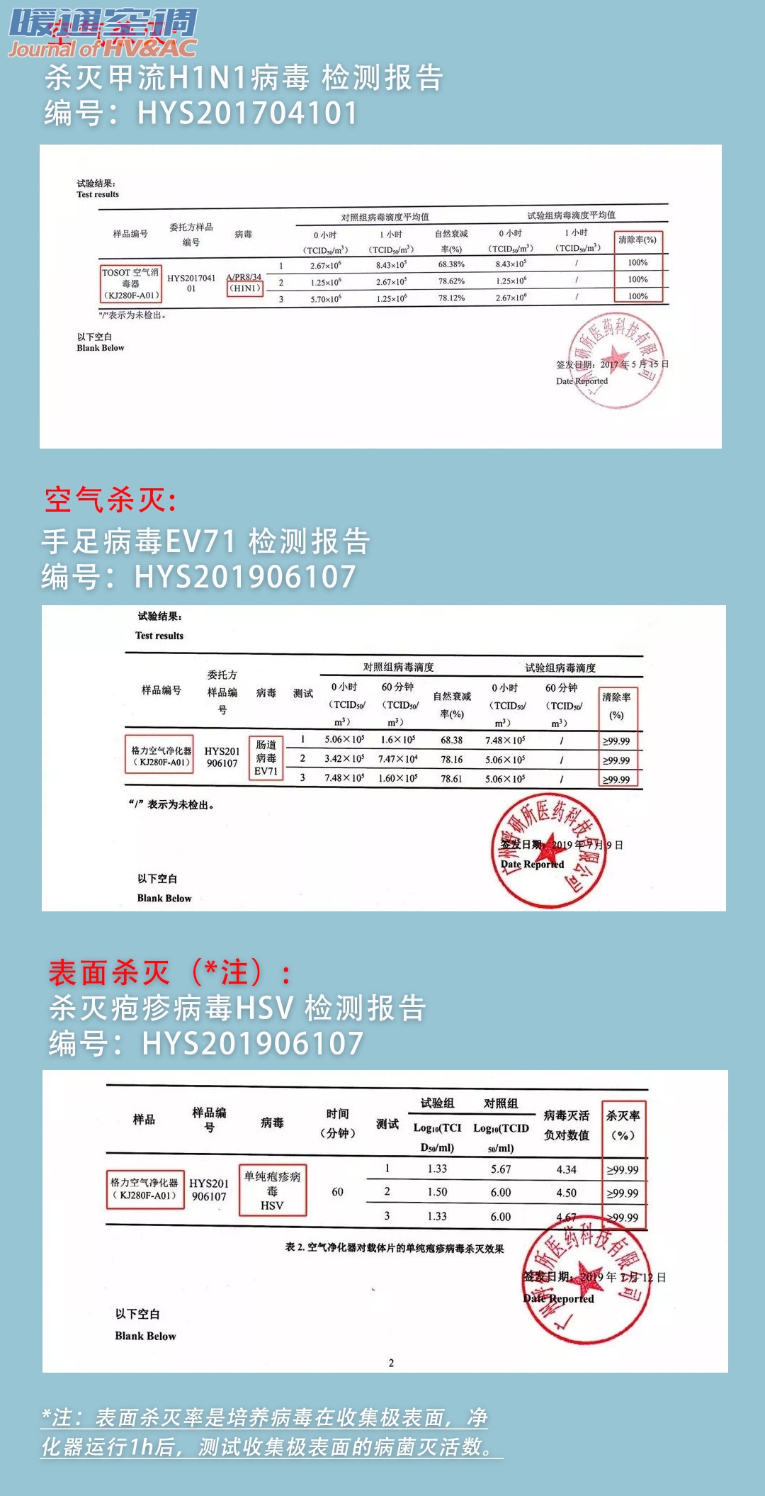 根据三方检测报告显示,这款空气净化器对于甲型H1N1型流感病毒的杀灭率为100%,对于手足口病毒EV71和单纯疱疹病毒HSV的杀灭率也高达99.99%。笔者认为,如此杀灭效率,在一定程度上为一线医疗机构的隔离病房和检测实验室等对空气洁净度有较高要求场所,提供了相对洁净、健康、安全的呼吸环境。