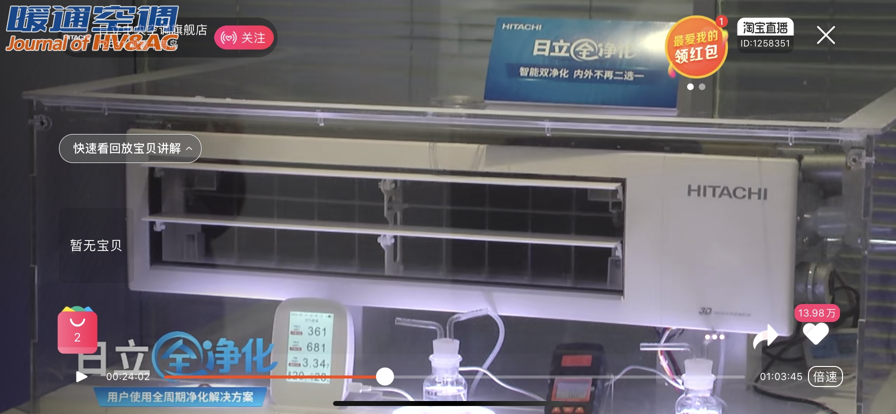 此外,直播间还通过模拟室内空气污染,感受日立新生态机的空气净化功能,并将日立服务工程师请入直播间,现场揭秘日立中央空调“净菌洗”全过程。