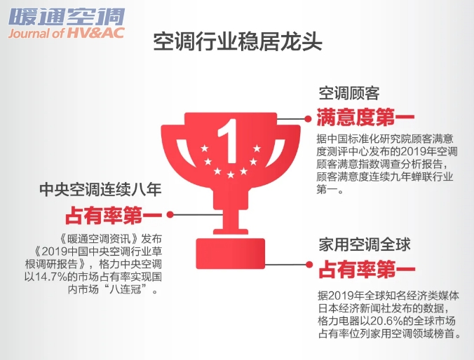 在行业整体销售出现下滑的情况下,格力电器保持了相对稳健的发展步调,连年领跑的行业地位持续稳固。2019年,全球知名经济媒体日本经济新闻社发布的数据显示,格力家用空调以20.6%市场占有率位列家用空调首位,连续14年领跑全球;奥维云网市场数据显示,2019年度格力电器占据中国(家用)空调线下市场份额TOP1,零售额占比36.83%;线下市场零售额TOP20家用空调机型中,格力电器产品有12个,占比达60%;在商用空调领域,格力2019年下线单机冷量达1300冷吨的磁悬浮离心机组,再次打破行业纪录,其暖通设备2019年相继服务于军运会、北京大兴机场等重大项目工程,为我国工业生产、轨道交通建设等领域提供专业的服务。据《taptap点点手机端资讯》数据显示,2019年格力中央空调市场份额达14.7%,实现国内市场的“八连冠”。