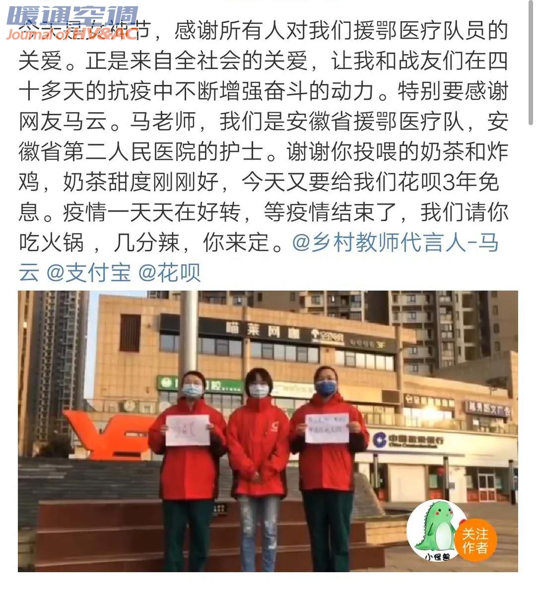 3月8日当天,来自安徽省援鄂医疗队的王琪和同事们收到了马云送出的炸鸡、奶茶等女神节福利后,倍感温暖的她在微博向马云发出火锅邀请。