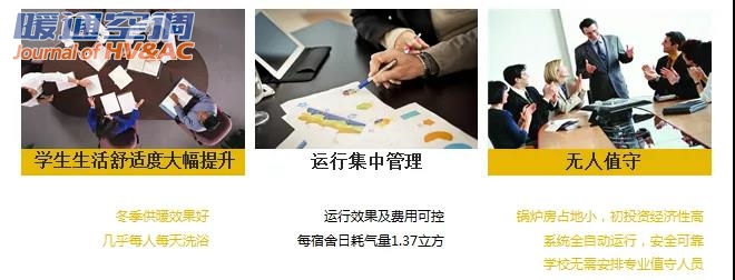 对比于原分宿舍的供暖、供热水形式,本次改造实现了供热运行的集中管理,供热效果大大改善的同时,运行效果和费用变得可控,是本项目的重大优势。实际的运行数据上:每宿舍4人,冬季一个月的数据折合每宿舍每日耗气量1.37立方,大大低于分户采暖+洗浴的单户日用气量,运行费用远远低于校方的心里预期。