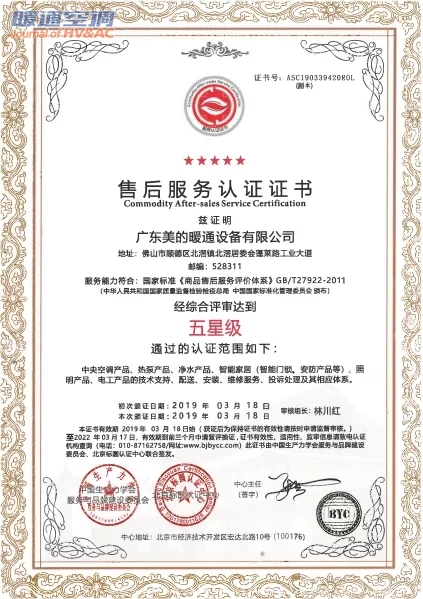 美的中央空调拥有行业内覆盖面最广、技术实力最强的服务体系,在全国各地有36个区域用户服务中心、3600多家安装维修网点、160多个备件仓库,形成了覆盖全国的服务网络,对客户的服务请求做到2小时内响应、24小时完成。凭借优质的售后服务水平和完善的服务体系建设,美的中央空调通过了“五星级售后服务认证”。