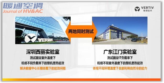 同时,维谛技术(Vertiv)深圳西丽实验室、广东江门实验室在直播中同步开测,分别对Liebert®PEX4S全时自然冷却精密空调在不同负载率、不同室外温度等条件下的性能进行检测。