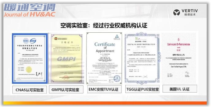 值得一提的是,维谛技术(Vertiv)的两个空调实验室建立了以ISO/IEC 17025为标准的质量体系,并经过了CNAS、GMPI、EMC安规TUV、TGG、UL等行业权威机构的认证,是目前国内机房专用空调业界最大、最专业、最精确的实验室之一,可测试5kW~400kW制冷量空调在各种工况下的制冷量、显热比、风量、能耗、焓差。检测报告可以使用ILAC国际互认标志,在57个签署协议的国家和经济体生效。