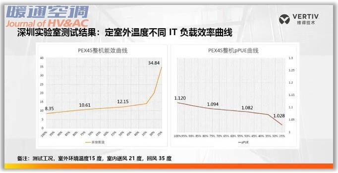 测试结果显示,Liebert®PEX4S机组在低负载下拥有较高的能效,这对于目前负载率低于50%的数据中心超过一半、大部分数据中心负载率在20%~30%的行业现状而言,具有非常大的节能意义。