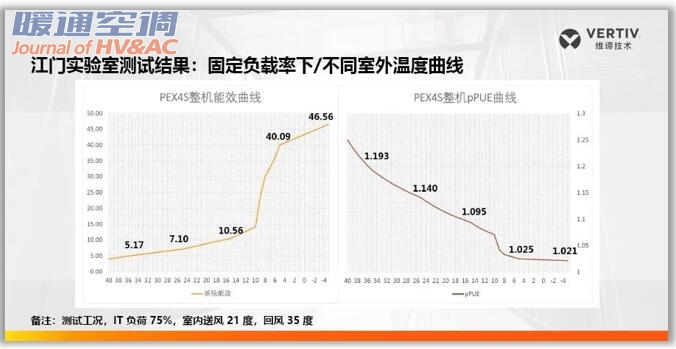 同时,合肥所在江门实验室完成对文件、仪器、测试方法及实验过程的审查后,宣布Liebert®PEX4S机组在室内机送风温度21℃、回风温度35℃,室外温度-5℃、5℃、15℃、25℃、35℃条件下的能效分别为46.56、40.09、10.56、7.10、5.17,测试过程符合GBT19413-2010标准要求。相关测试数据达到了高于业内平均水平两倍的效果。