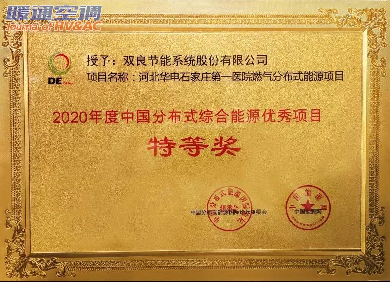 9月17日,2020年度中国分布式能源优秀奖项颁奖典礼隆重举行,双良节能凭借石家庄第一医院天然气分布式能源项目,荣获“2020年度中国分布式能源优秀项目特等奖”。