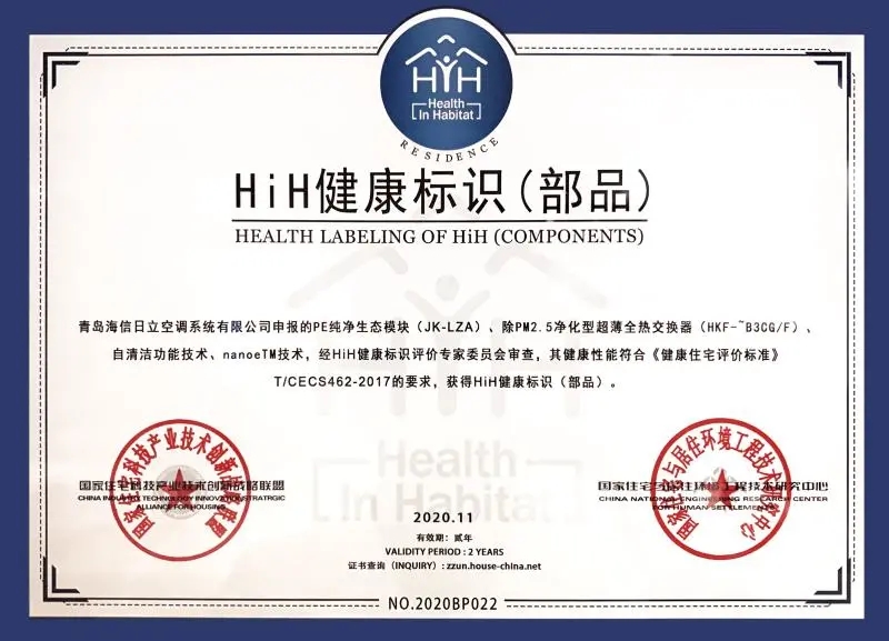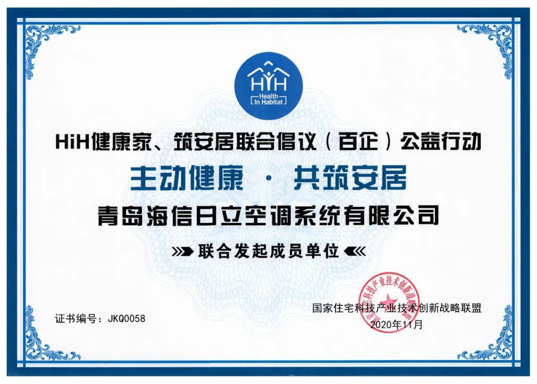 海信日立获HIH健康标识,后疫情时代共筑健康住宅