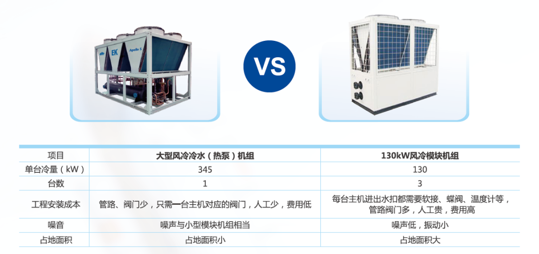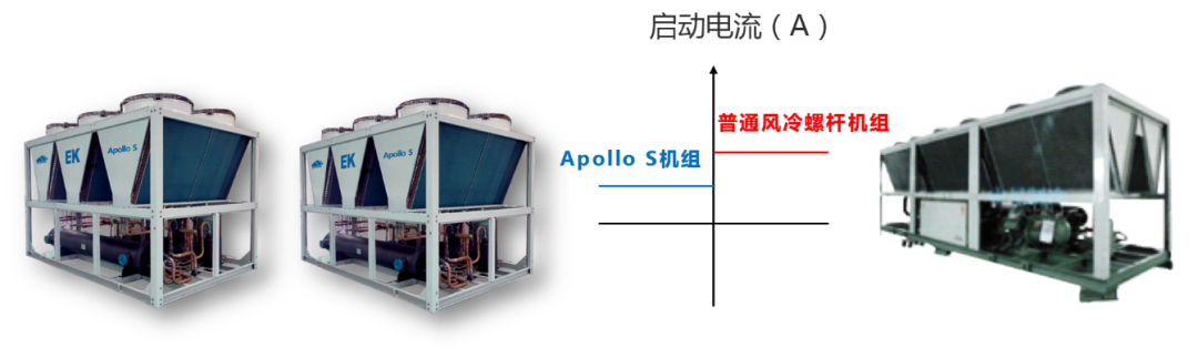 启动电流仅为螺杆机的1/2,随着模块的组合使用,启动电流对比同等冷量的单台风冷螺杆会更低。