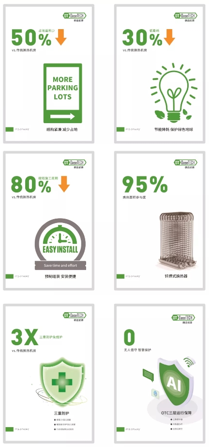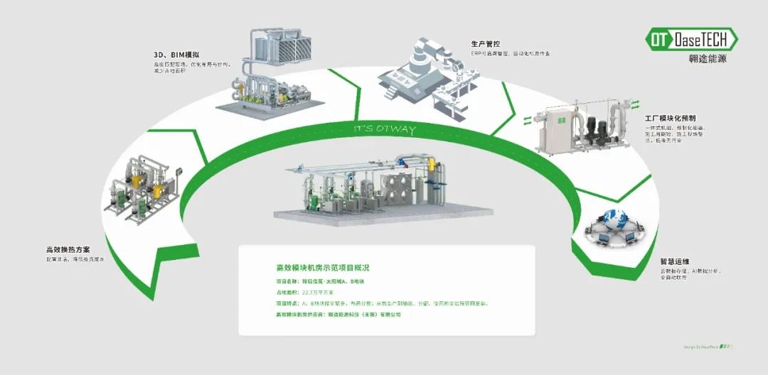 翱途能源高效模块机房以高效、低能耗、占地少、模块化预制组装、AI智能运维等优势为太阳城项目的系统运行提供了强有力的保障,更为客户降低了大量投资、运营成本,强有力的为客户的经济效益赋能。